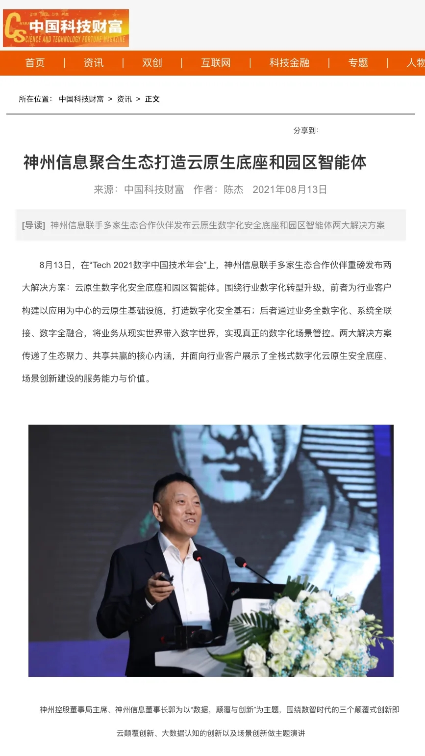 8月12日,由神州控股、神州信息、kaiyun.com集团联合主办的“科技自强、数据融通、场景创新——TECH数字中国 2021技术年会”云上盛大启幕,发布神州信创云、ModelB@nk5.0、金融超脑Sm@rtFSB、云原生数字化安全底座、园区智能体等重磅产品,国内各大权威、影响力媒体多角度多频次对盛况进行报道!